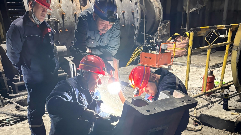故障發(fā)生后,白玉銀興公司經(jīng)理田東清迅速抵達現(xiàn)場,根據(jù)設備故障狀況進行現(xiàn)場研判并采取果斷措施進行停機搶修。在搶修現(xiàn)場,黨員干部主動亮身份、扛重擔,充分發(fā)揮先鋒模范作用,成為搶修隊伍中的“主心骨”。田東清帶領維修團隊趴在設備旁仔細排查故障點,在刮瓦環(huán)節(jié)精細操刀,憑借多年豐富經(jīng)驗和專業(yè)技術(shù)儲備,勾畫出完美的弧線。為了加快搶修進度,搶修人員放棄休息時間,輪班作戰(zhàn)、每天連續(xù)工作16小時,累了就趴在桌上短暫小憩,始終堅守在搶修一線。食堂將飯菜、飲用水送到現(xiàn)場,確保搶修人員有充沛的體力。